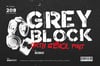 Proudly present Greyblock - Dirty Stencil Font, created by ikiiko.